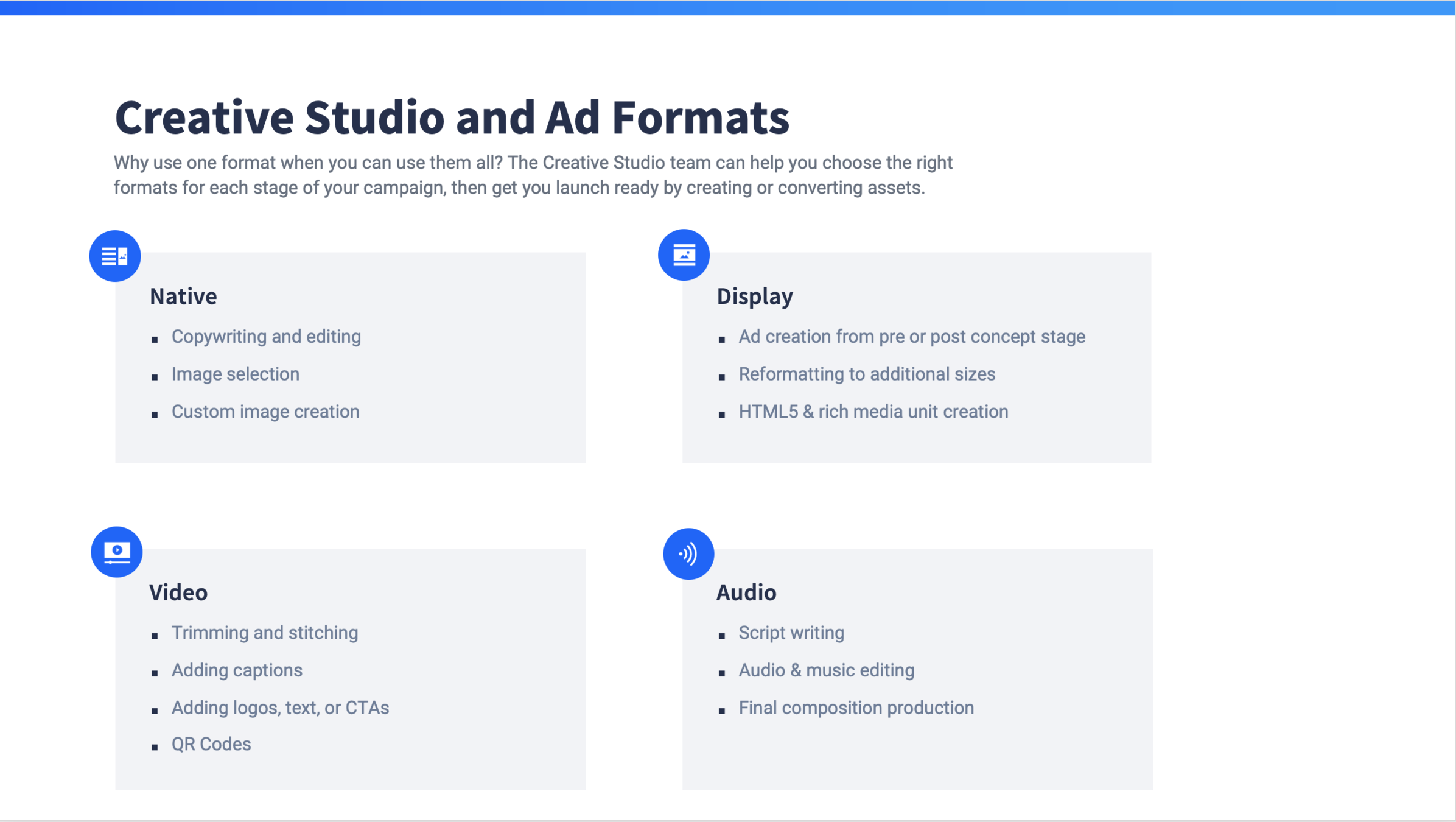 Our in-house Creative Strategists can build custom units for your programmatic strategy in order to meet your unique campaign goals.