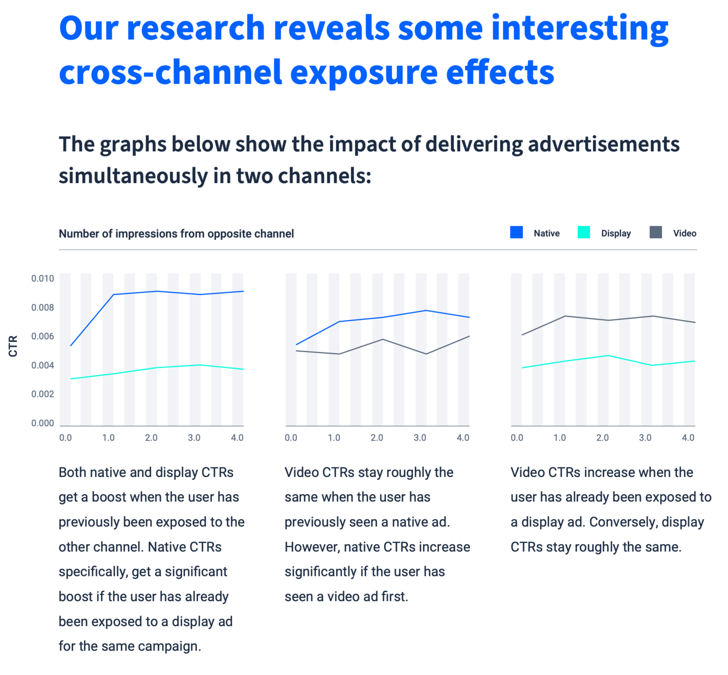 Our research reveals some interesting cross channel exposure effects from running native with video and display.
